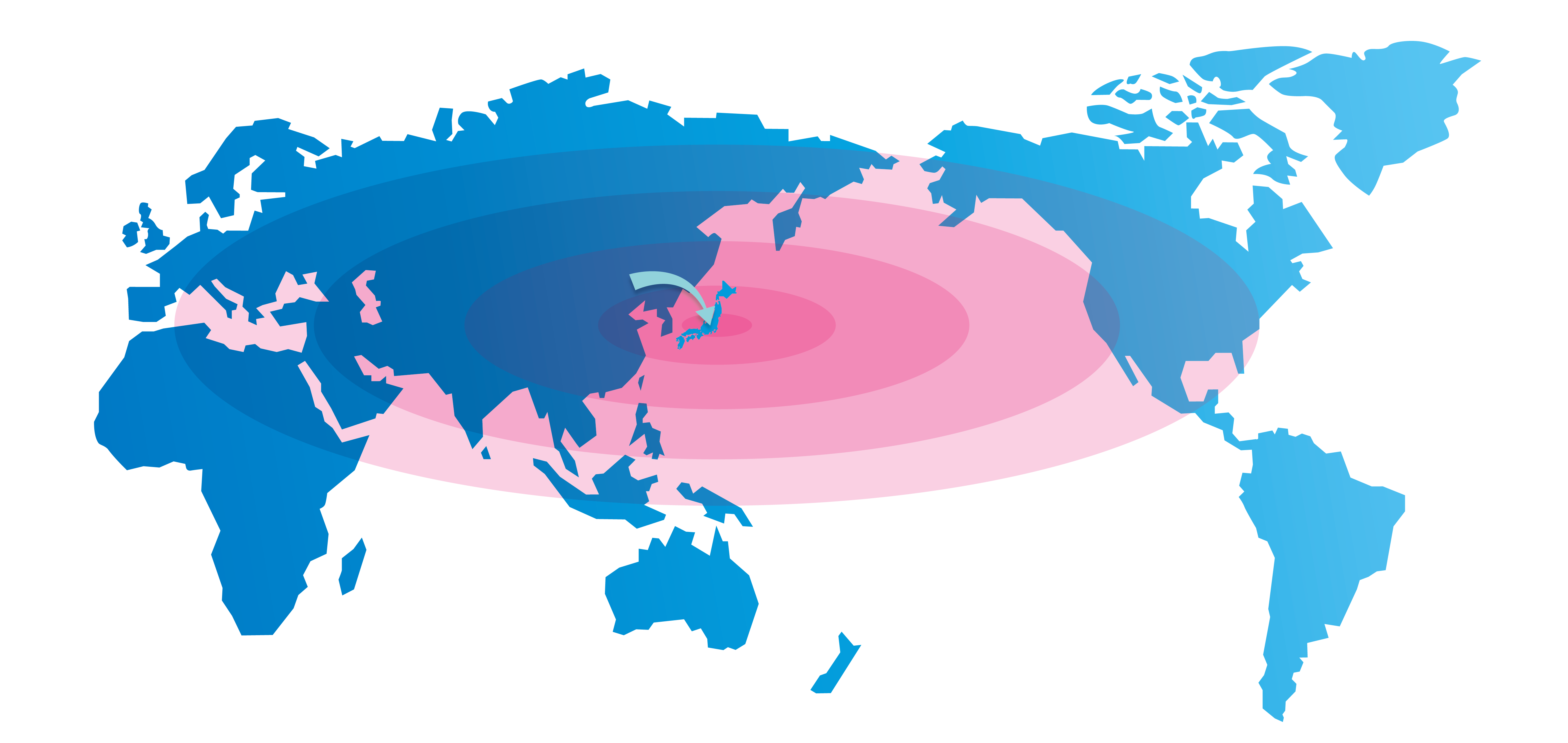 製品を世界のどこにでも納品できる体制でお客様のビジネスを支えます。(一部、弊社の親会社を経由して納品いたします。)